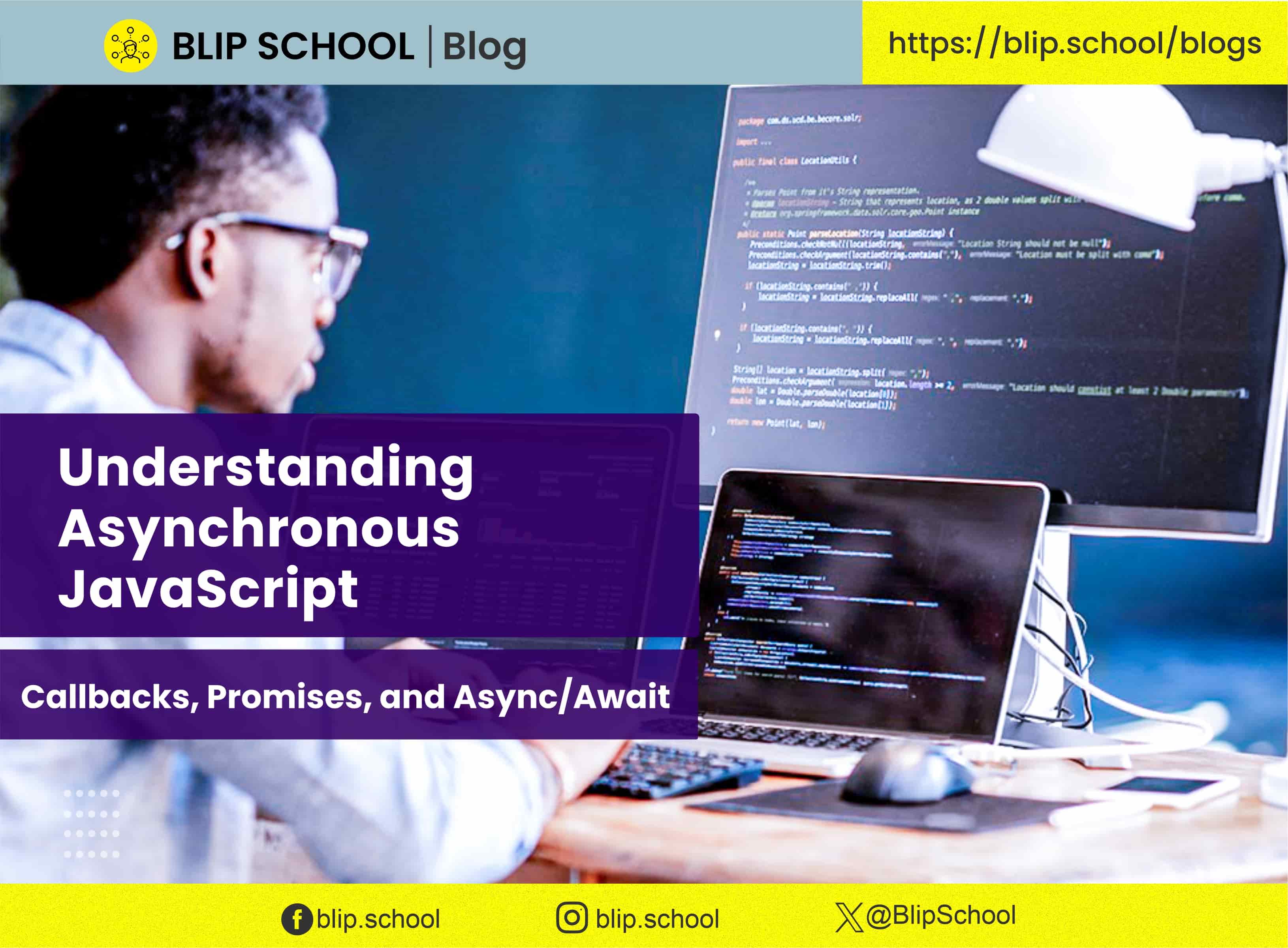 If you're eager to dive deeper into JavaScript, check out our comprehensive programs at Blip School. Blip School offers beginner, intermediate, and advanced courses on Node.js and JavaScript, designed to help you become an expert in mastering asynchronous JavaScript and developing modern web applications. You can learn, practice, and watch videos that will enhance your skills, with experts in the field ready to guide you and answer your questions.